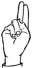 На ћирилици написано СРЕДОЈЕ ЧОМАГИЋ састоји се из 14 слова [?]. Исписано ћириличном једноручном азбуком за глувонеме: